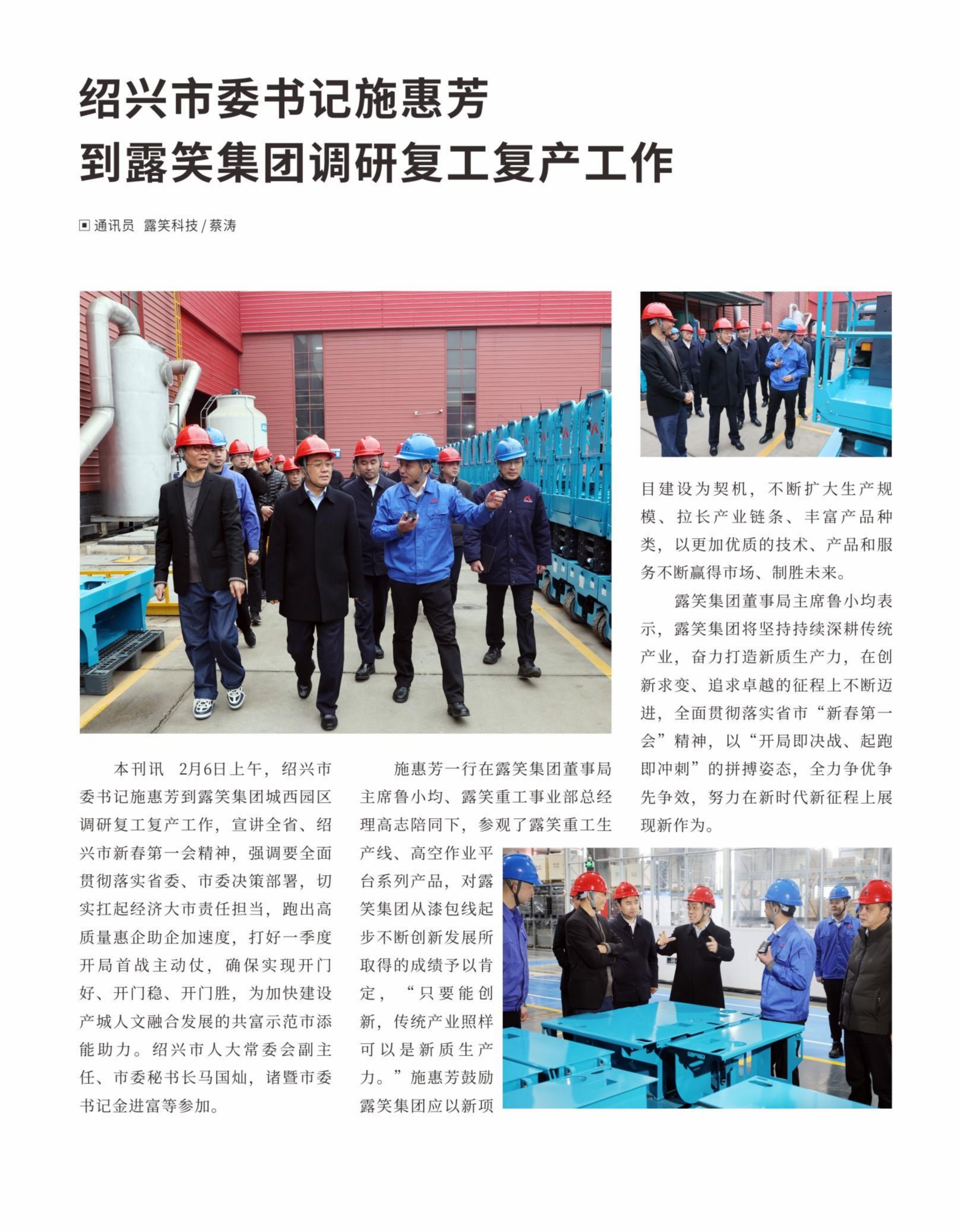绍兴市委书记施惠芳到露笑集团调研复工复产工作